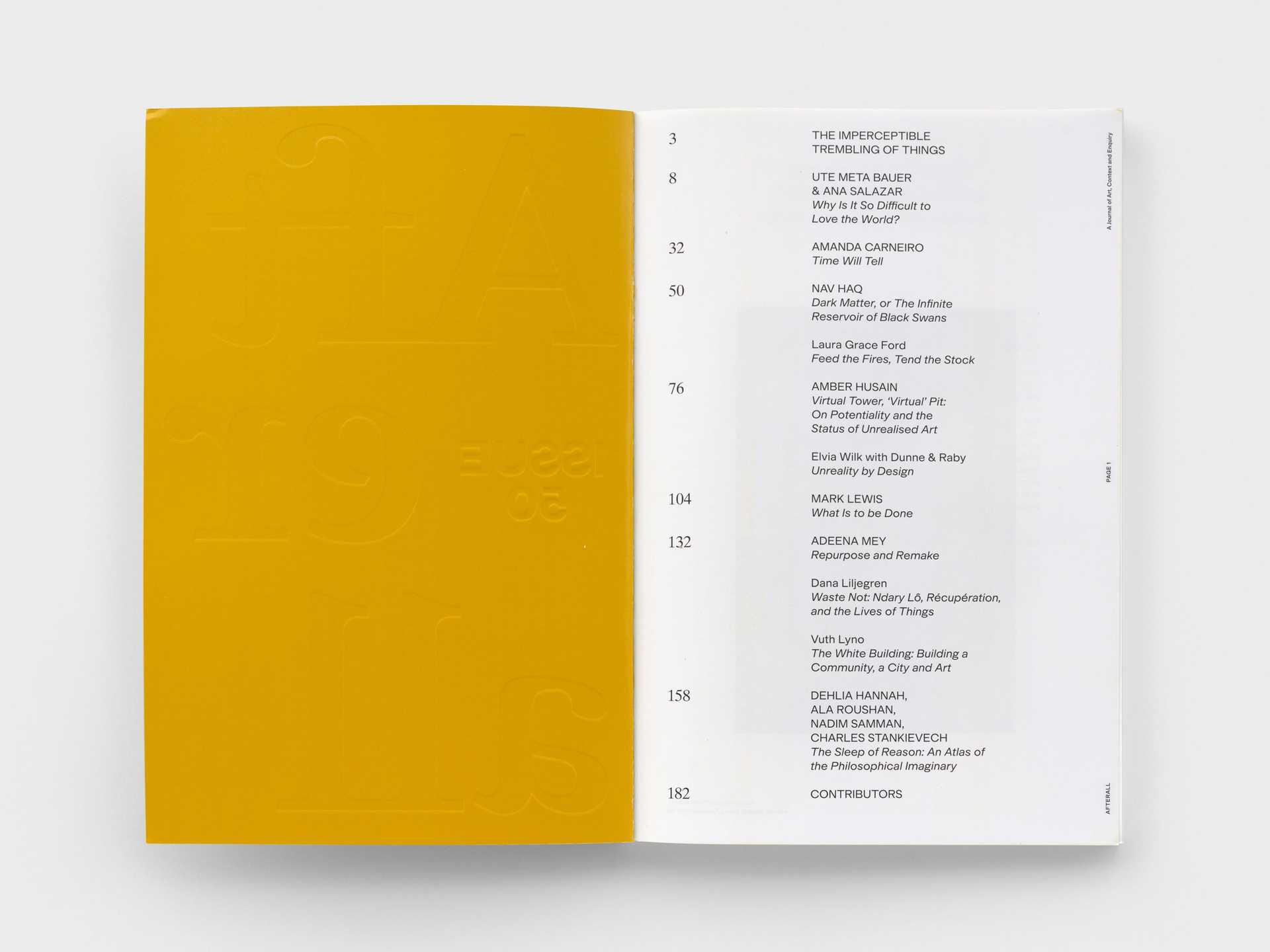 The fiftieth edition of the storied journal, 50 Minus 1, was produced amid the many turbulences—immunological, social and political—that marked 2020. Faced with these crises, while also working under the sign of a jubilee publication, the journal's editorial group found itself certain of at least one thing: publishing as usual was no option. Pacific spent much of the last year working with Afterall to reimagine how the journal could respond to the times, and continue to stay relevant for the next 50 issues.