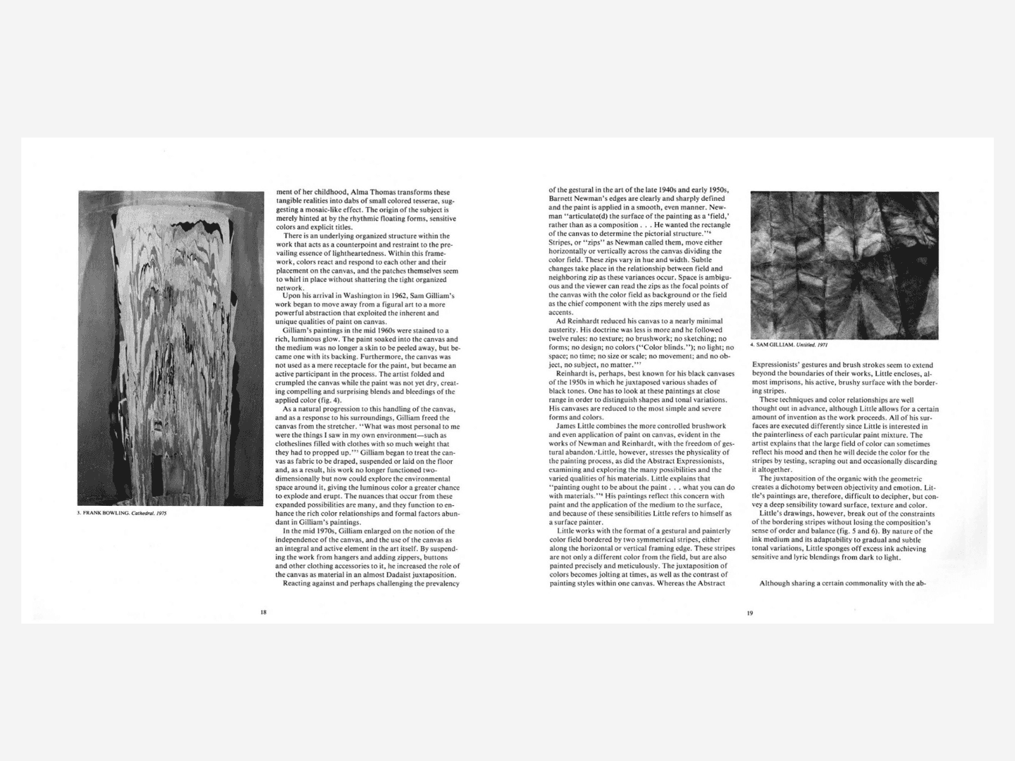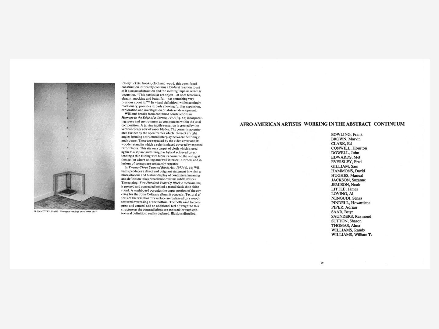 The publication contains extensive writing by Goode Bryant and Philips drawn from interviews with the featured artists, as well as 58 black-and-white and 16 color images documenting the work of 25 artists: Banerjee, Frank Bowling, Donna Byars, Ed Clark, Houston Conwill, John Dowell, Mel Edwards, Wendy Ward Ehlers, Fred Eversley, Susan Fitzsimmons, Sam Gilliam, Gini Hamilton, David Hammons, Manuel Hughes, Suzanne Jackson, Noah Jemison, James Little, Al Loving, Senga Nengudi, Howardena Pindell, Betye Saar, Raymond Saunders, Sharon Sutton, Randy Williams, and William T. Williams. A newly commissioned afterword by Thomas (T.) Jean Lax, curator of the exhibition Just Above Midtown: Changing Spaces at the Museum of Modern Art, is also included.