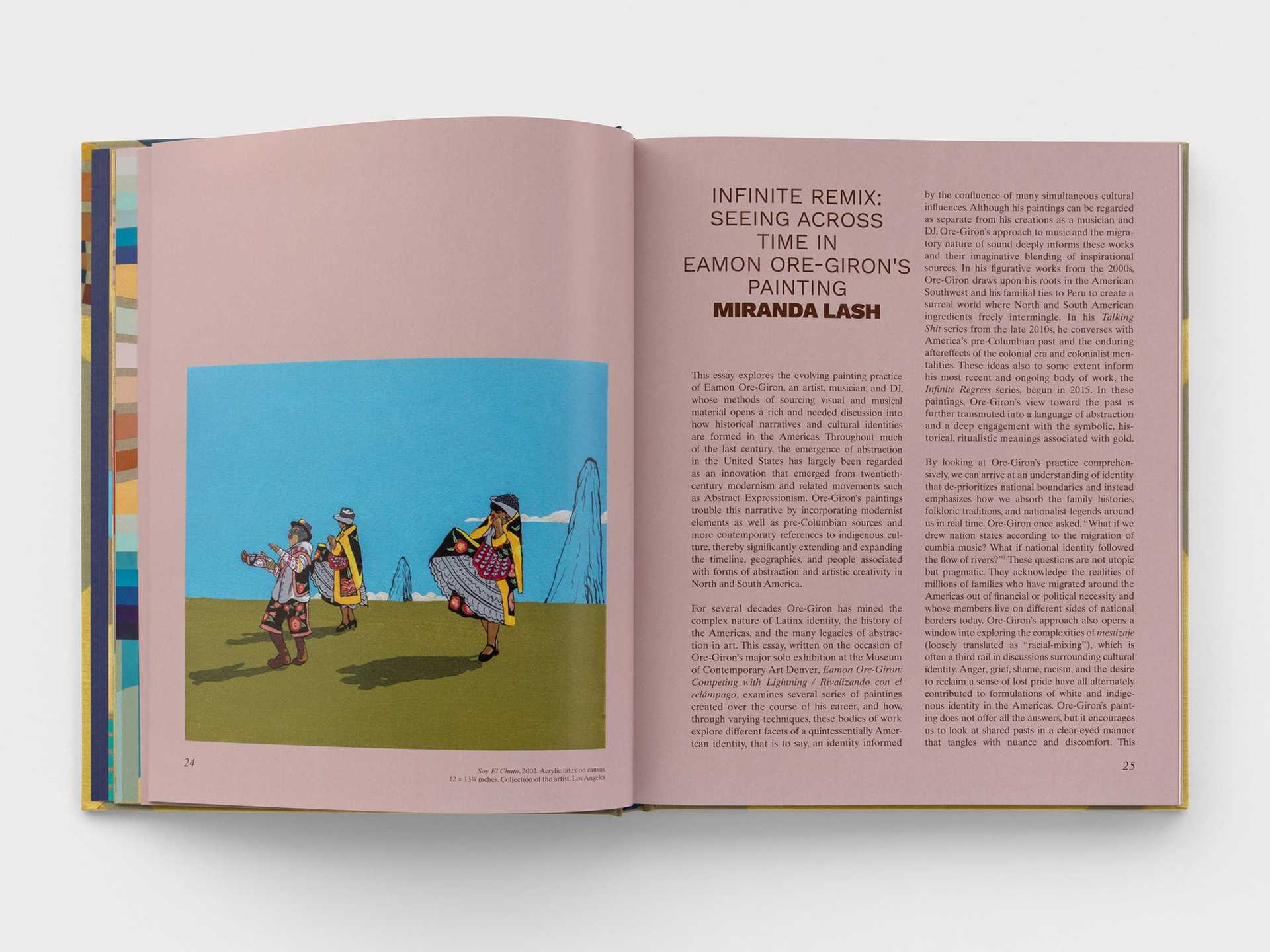 Over the course of his career, Eamon Ore-Giron has examined the personal and historical ramifications of cultural hybridity. Raised in Tucson, Ore-Giron is inspired by his roots in the American Southwest, his visits to his father’s hometown of Huancayo, Peru, and his time spent as a practicing artist in California and Mexico. This book brings together for the first time three pivotal chapters in Ore-Giron’s career: his Southwest and Peruvian-inspired figurative works from the 2000s; his paintings from the 2010s that engaged elements of both figuration and abstraction, including an ongoing series focused on Mesoamerican deities; and the sublime gold-based paintings from his recent “Infinite Regress” series.