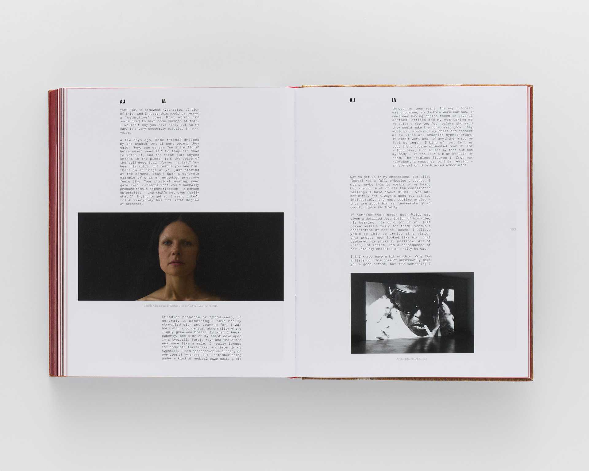 Each chapter of Orgy for Ten People in One Body corresponds to one of the ten sculptures with a palimpsest of reference images, process photos and installation views. The publication includes two conversations with Albuquerque, with Arthur Jafa and with Miranda July.