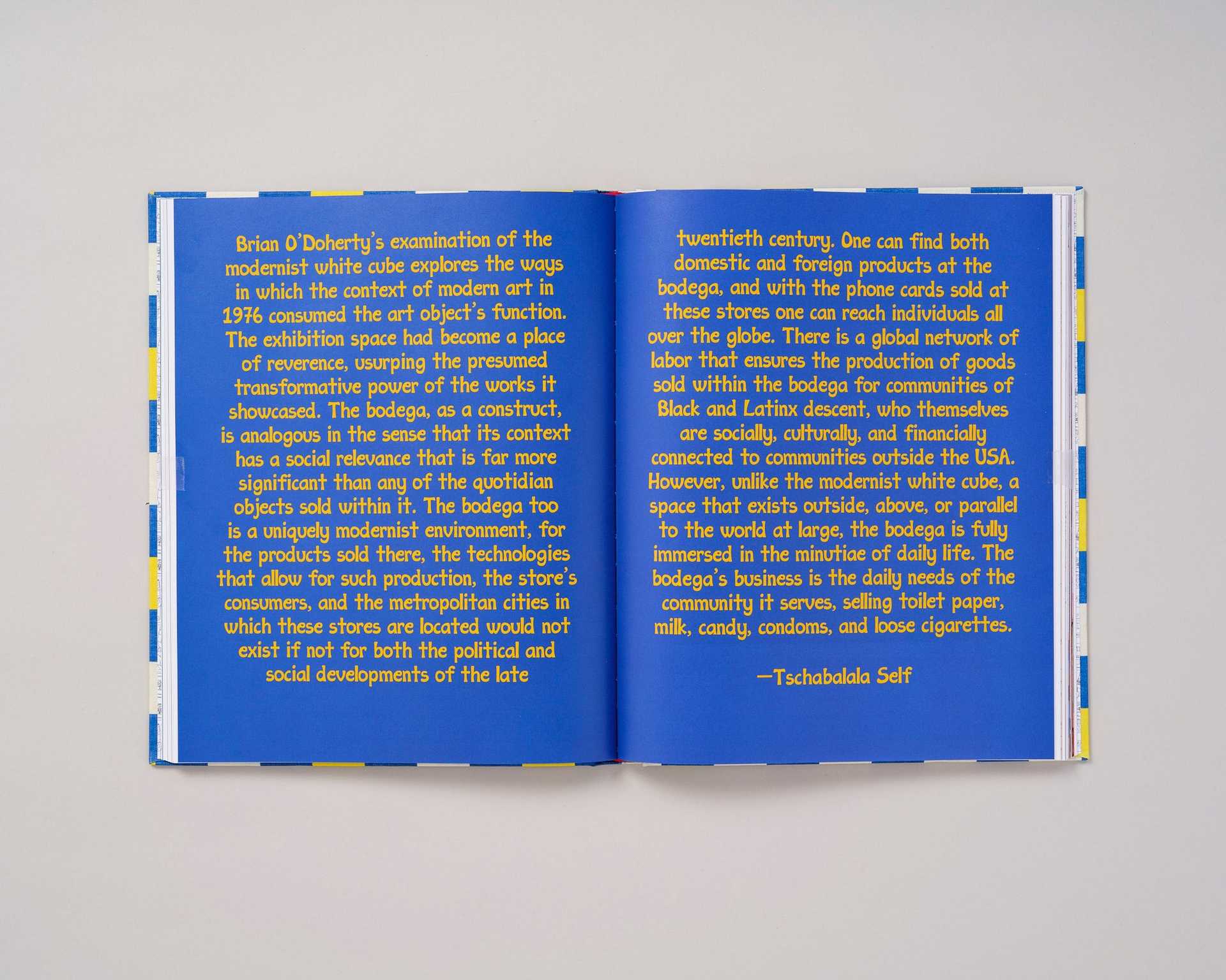 This lavishly designed monograph reproduces works and photographs from throughout the Bodega Run series, alongside new texts that expand on the project and Self’s practice. A sewn-in zine insert with photographs of New York bodegas is also included in the publication.